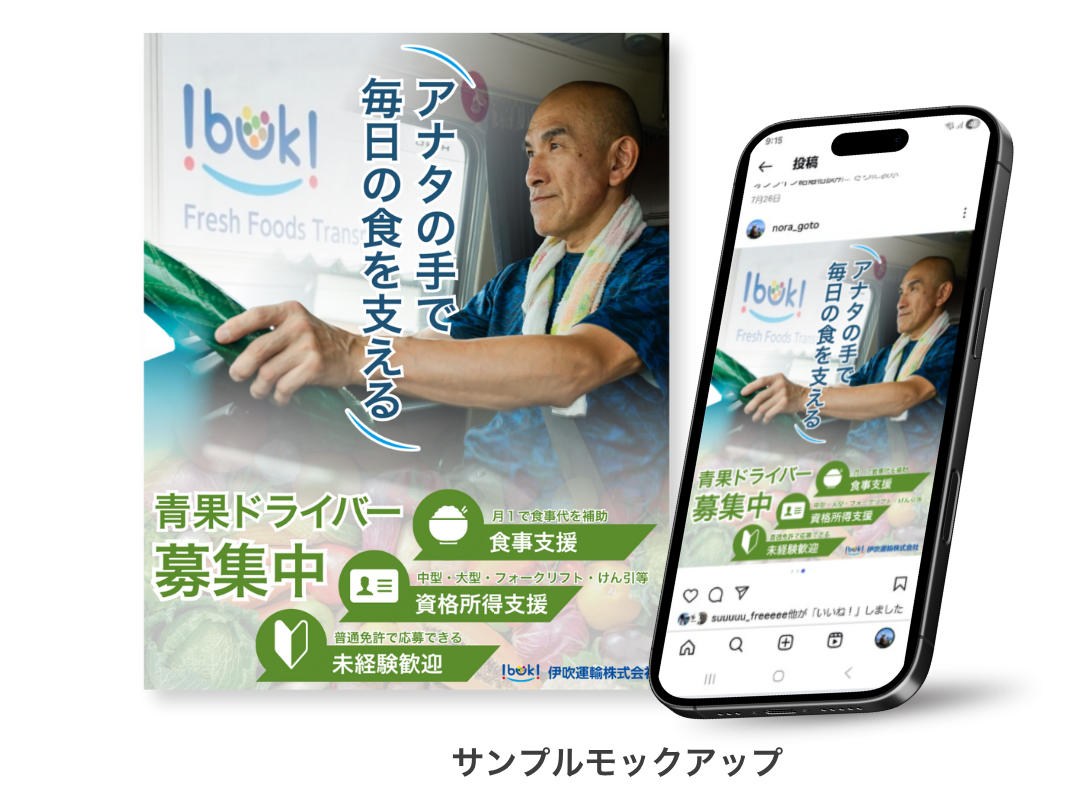 ドライバー、ロゴを見せ、信頼感と温かみを表現。