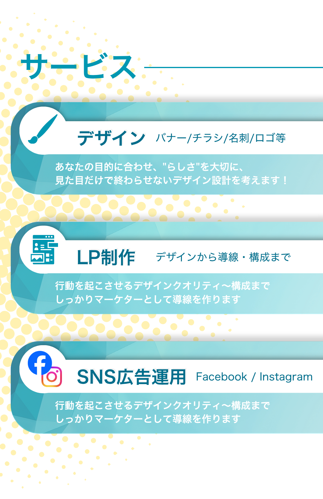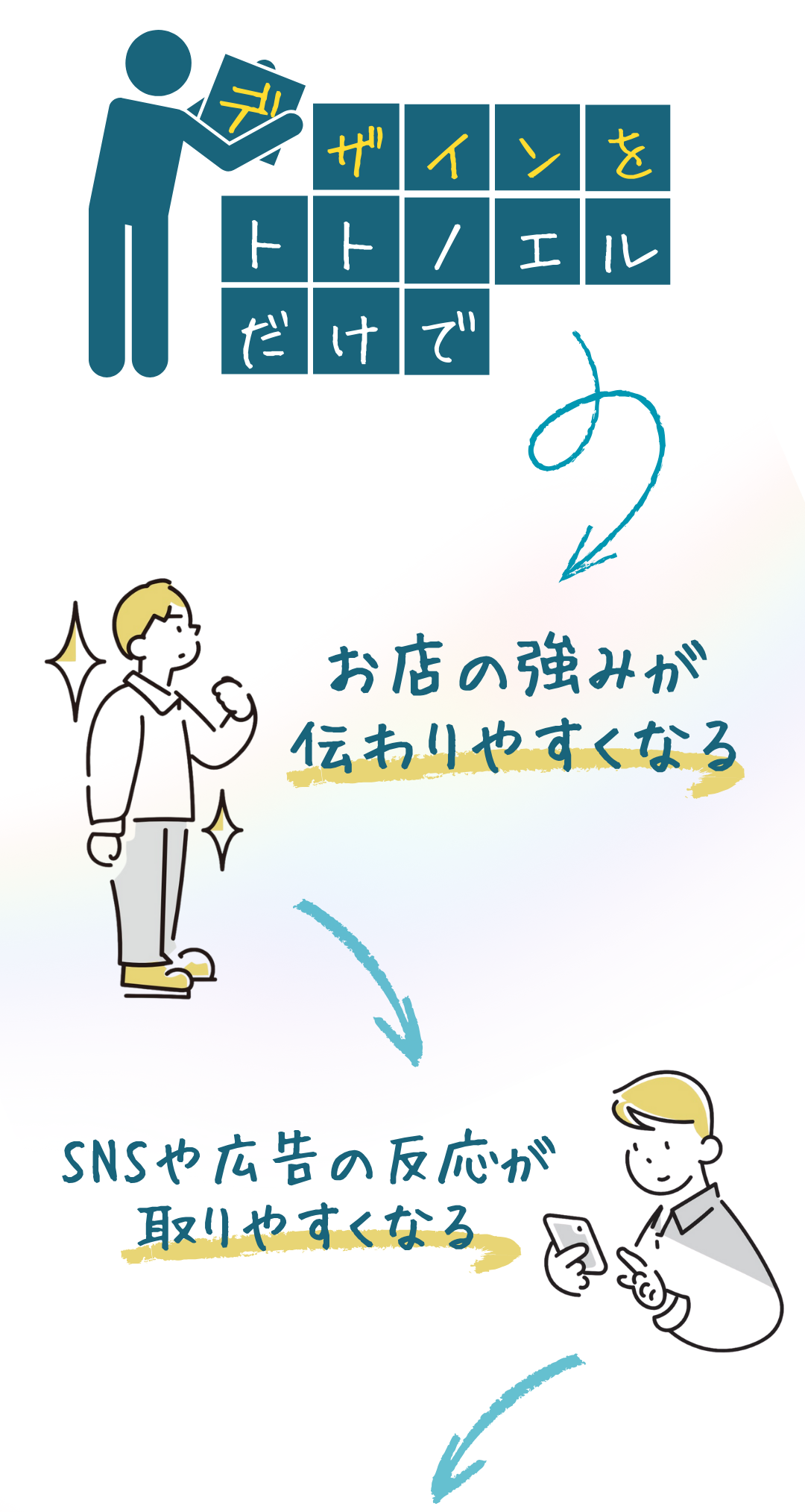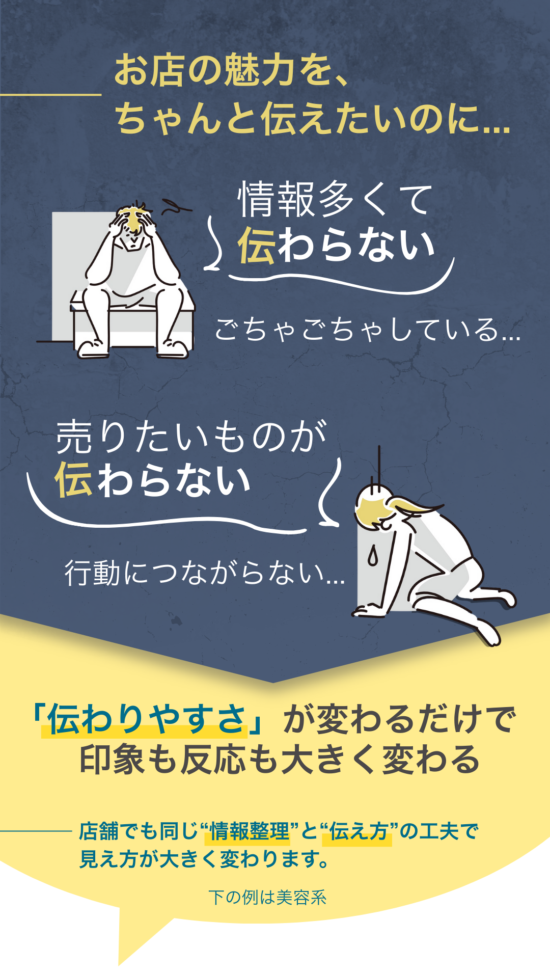 コピーで差別化し、3要素で店舗の魅力を訴求。
