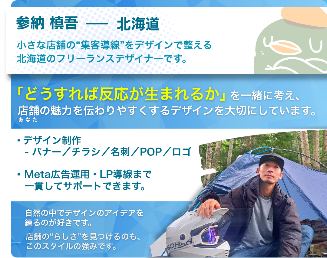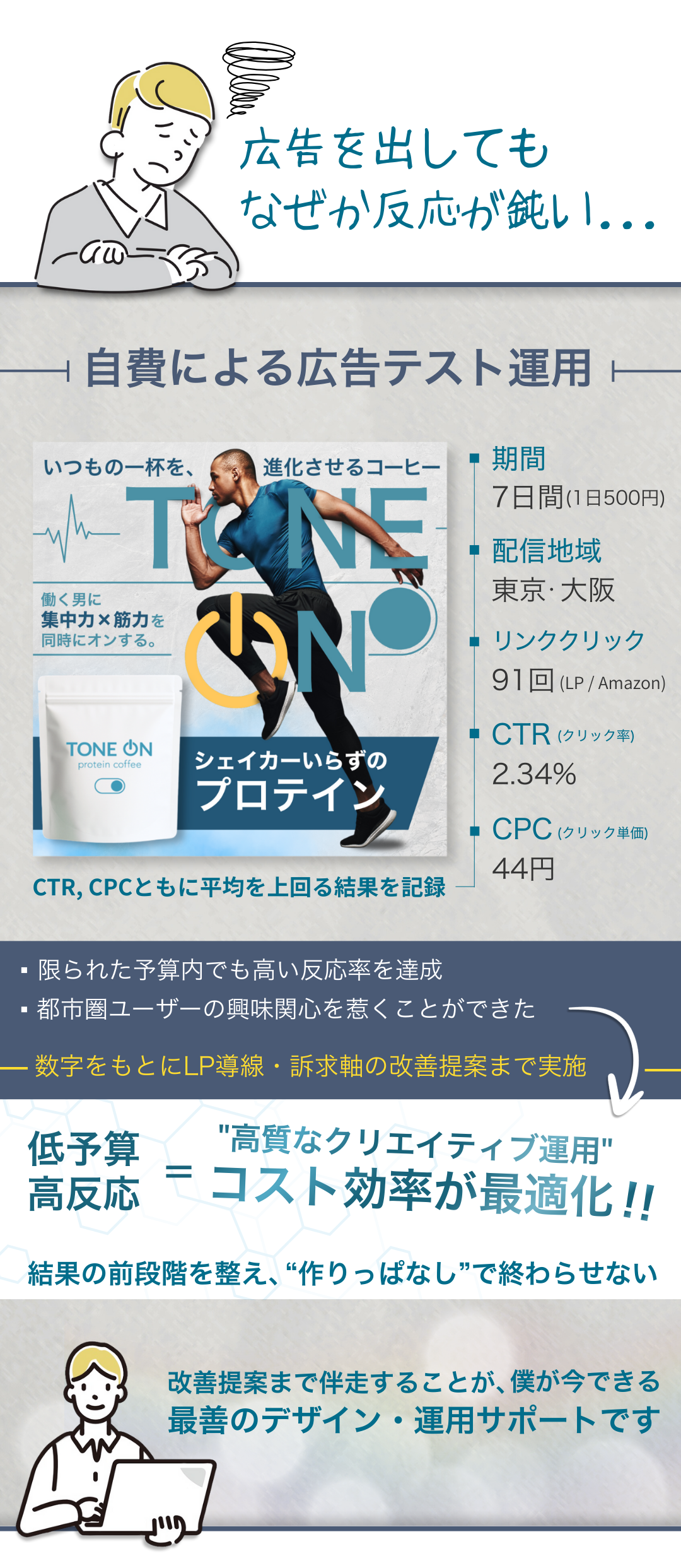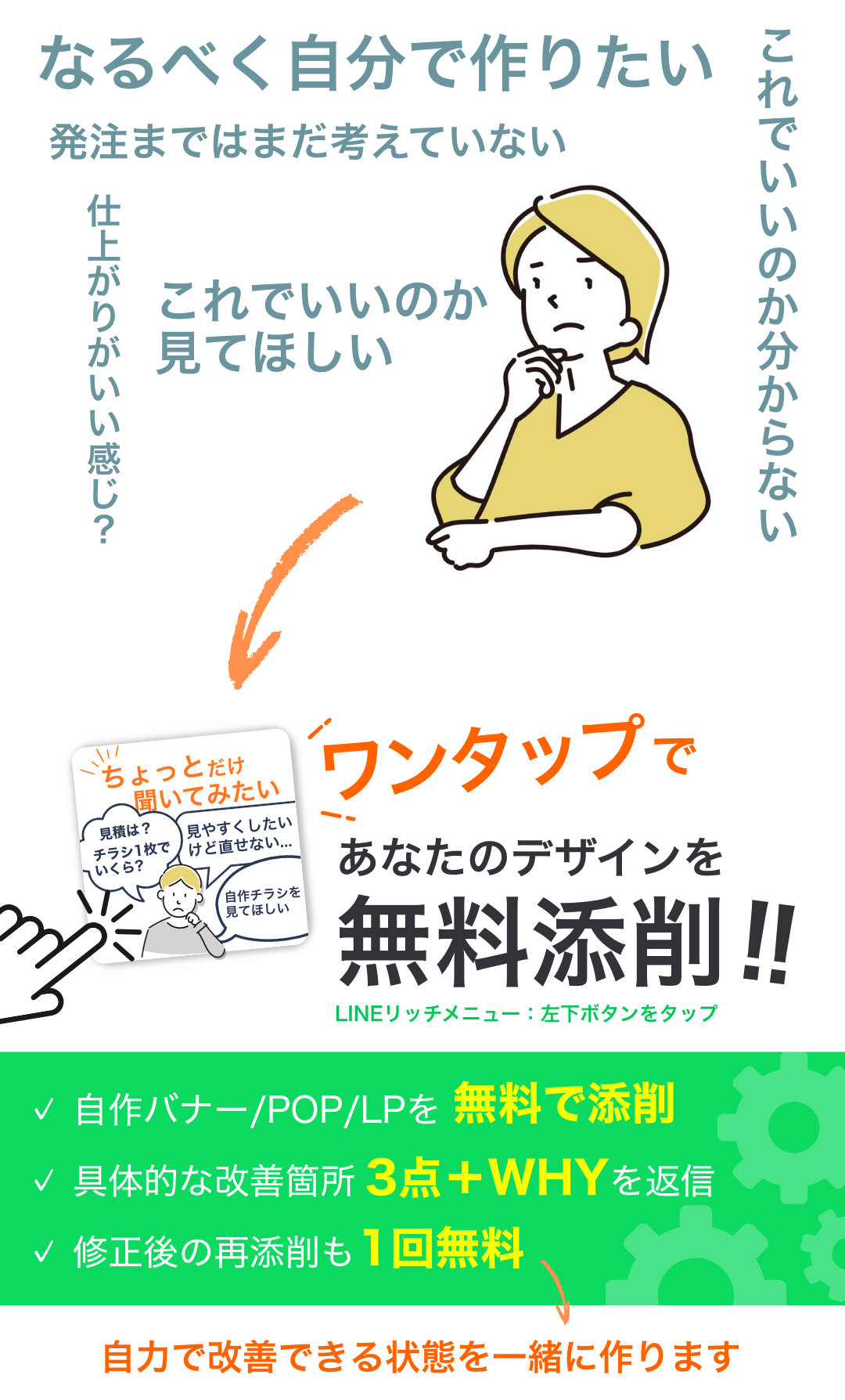 コピーで差別化し、3要素で店舗の魅力を訴求。